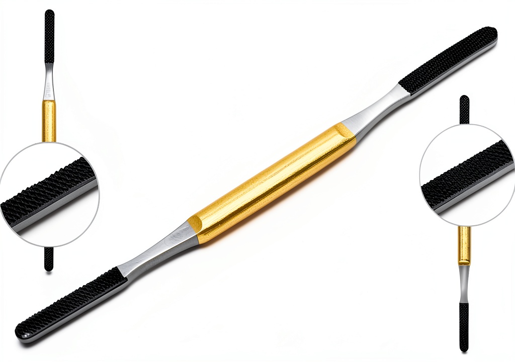 This nasal rasp is primarily used in orthopedic and plastic surgery for contouring and smoothing bone surfaces, such as in rhinoplasty or facial reconstruction. It suits operating rooms, clinics, and medical training environments, targeting surgeons, orthopedic specialists, and healthcare professionals who require precision instruments. The tool’s design allows for controlled, efficient shaping, reducing procedure time and improving patient outcomes in various surgical applications.