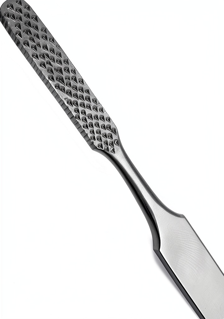 The bone raspatory is crafted from German stainless steel, which provides excellent durability, corrosion resistance, and ease of sterilization.