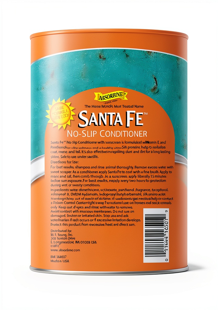 This premium horse coat conditioner from W.F. Young is specially formulated to enhance equine grooming routines. It features key ingredients like vitamin E, panthenol, and sunscreen to provide deep conditioning while protecting the coat from environmental factors. The product dimensions are 4.5 x 2 x 10.75 inches, with an item weight of 2.3 pounds, and it carries the model number 441225. Designed for horses, it helps maintain a healthy, vibrant appearance by repelling dust and dirt and preventing sun-induced fading.