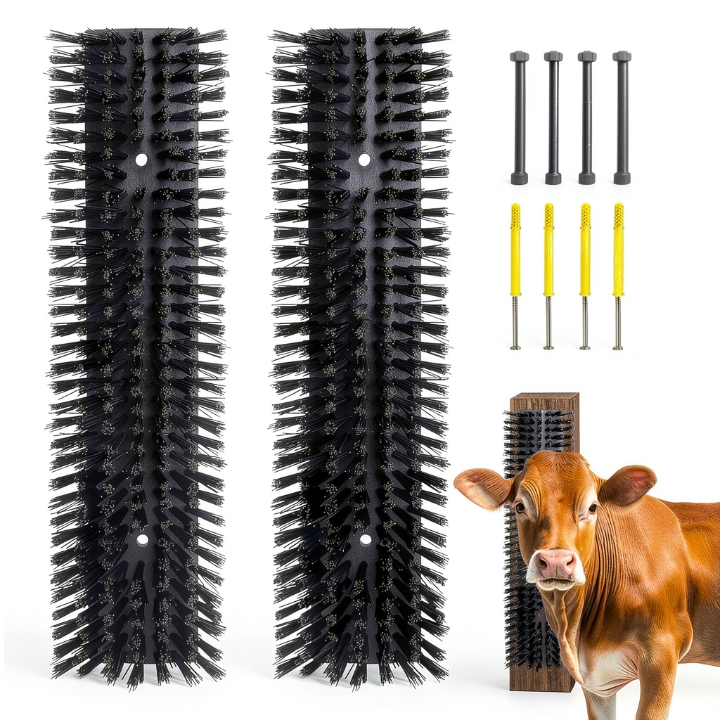 This livestock brush is ideal for daily grooming routines in barns, pastures, and stables, catering to farmers, ranchers, and pet owners who prioritize animal welfare. It can be easily installed on fence posts, stumps, or other sturdy surfaces using the included screws and nuts, allowing animals to access it independently for scratching and cleaning. Suitable for cattle, sheep, horses, deer, and pigs, it helps alleviate itching and discomfort while encouraging natural grooming behaviors. Whether used in large-scale agricultural settings or small homesteads, it supports overall animal hygiene and reduces the risk of skin issues.